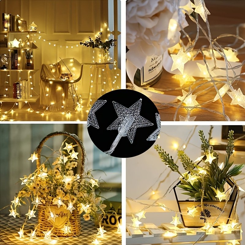 Home > 1pc Star String Lights; 3m/10ft; 6m/20ft; EFFE LED Fairy Twinkle Lantern Lights With 20 Stars 2 Flashing Modes; Battery Powered Indoor & Outdoor Decor
